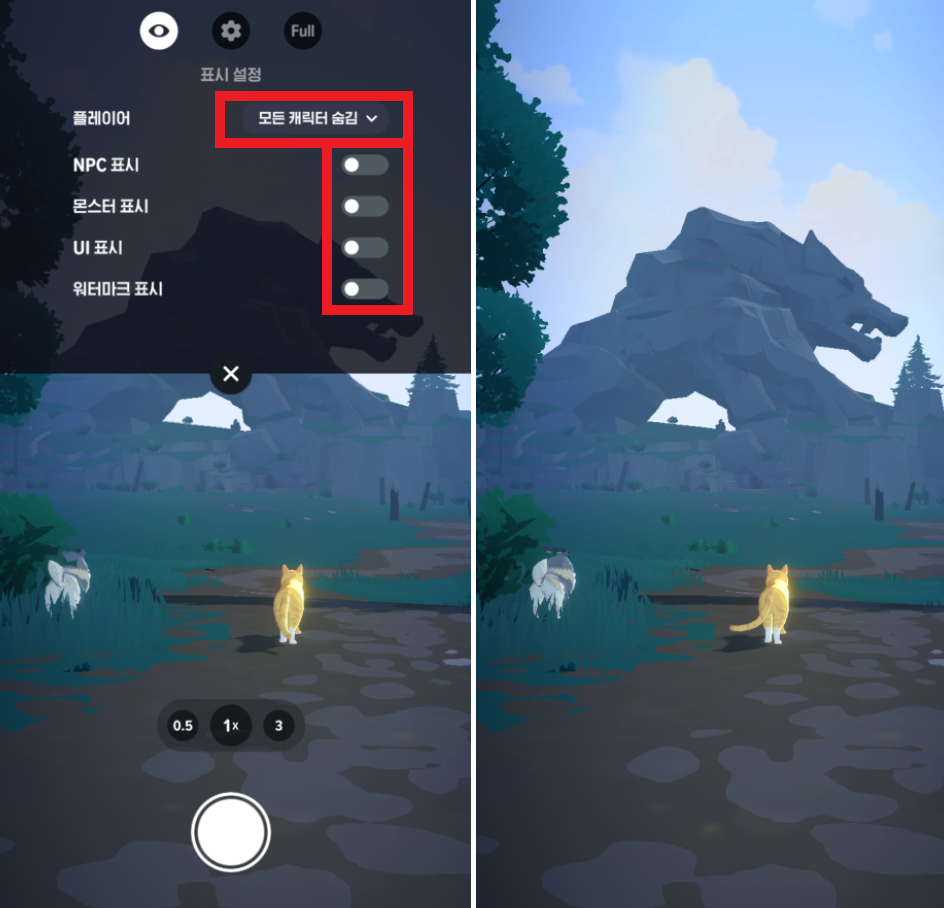 UI 표시, 워터마크 표시를 전부 꺼주고