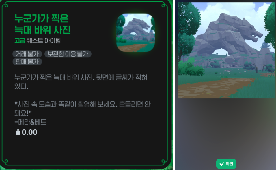 메라 NPC한테 사진찍는 퀘스트를 받아주세요