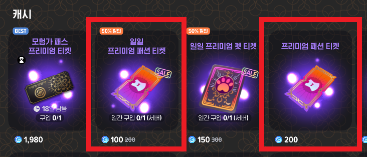 일반 프리미엄 패션 티켓은 계속 구매 가능하지만