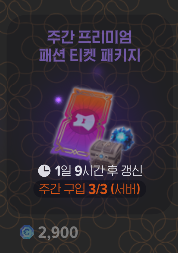 주간에 있는 프리미엄 패션 티켓 패키지(2,900젬)