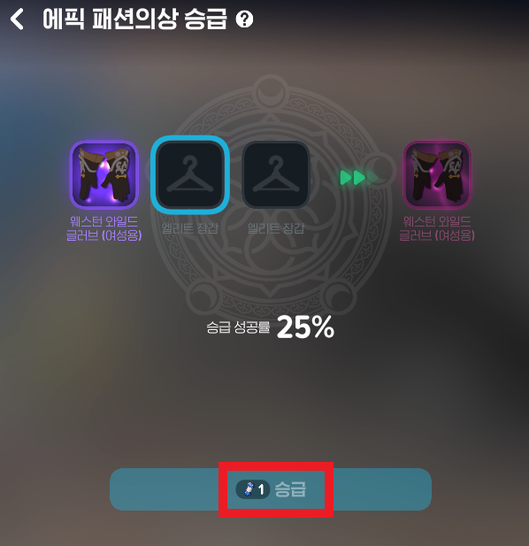 엘리트 패션 장비를 에픽으로 승급 시킬 때