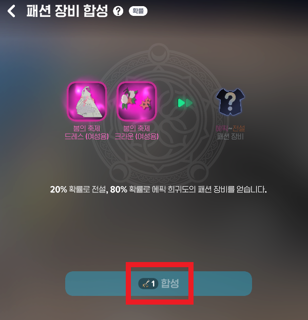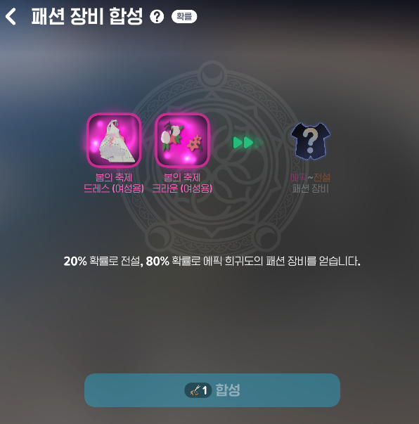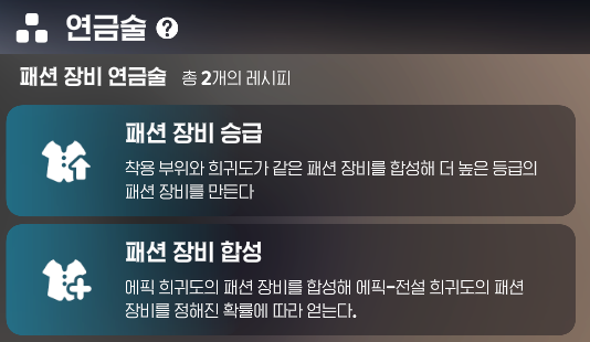 에픽 희귀도 패션 장비 합성을 통해서만 획득할 수 있어요.