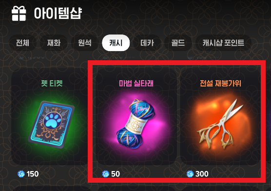 캐시샵 - 아이템샵 - 캐시로 들어가시면