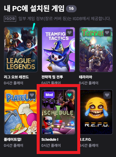 아래로 내리면 내 PC에 설치된 게임이 있습니다.